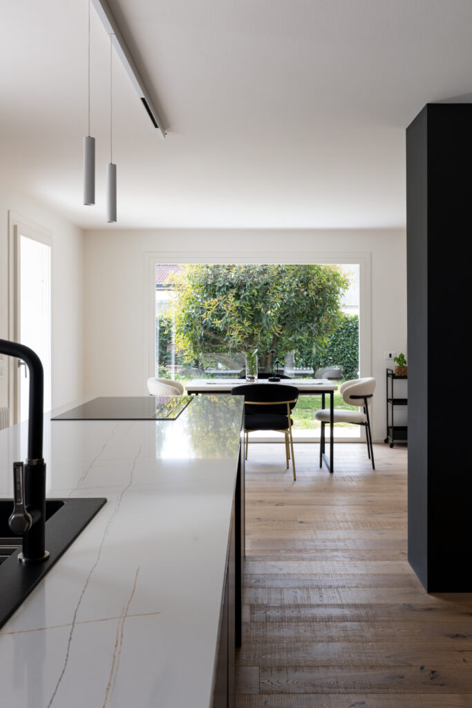 Progetto di ristrutturazione importante, che ha portato ad una completa trasformazione degli spazi, rivelando una doppia altezza e una gestione molto fluida degli ambienti. Il risultato, una residenza accogliente e raffinata come le persone che la vivono.